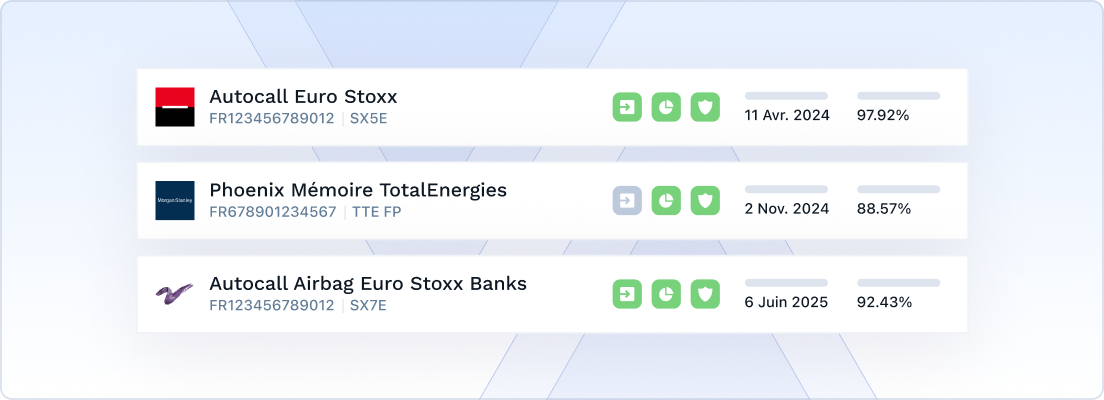 📅 Per maturità teorica: i prodotti con sottostanti al di sopra della barriera di richiamo sono messi per primi, in ordine di data di rimborso, seguiti da quelli con sottostanti al di sotto della barriera di autocall o senza autocall, in ordine di scadenza.