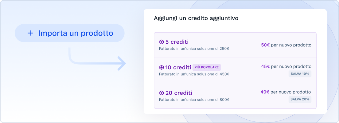 Oltre ai tuoi 5 crediti aggiuntivi annuali, ora puoi acquistare pacchetti di crediti aggiuntivi dal tuo portafoglio. Sono disponibili pacchetti da 5, 10 e 20 crediti.
